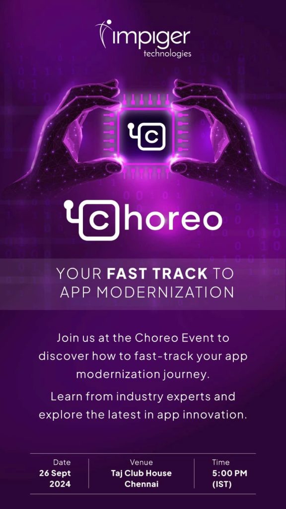 Chennai, India – September 26, 2024 – Impiger Technologies, in collaboration with WSO2, successfully hosted the Choreo Event at the Taj Club House, Chennai. The event brought together business leaders, technology experts, and developers for an evening dedicated to exploring the future of application modernization.